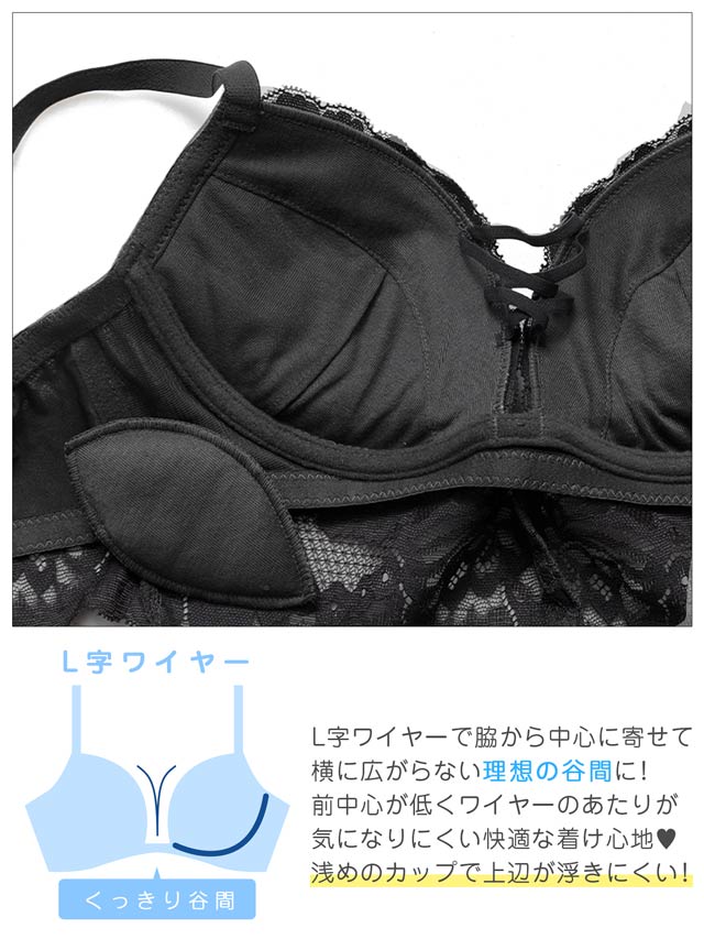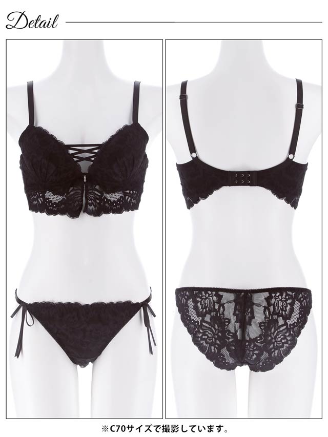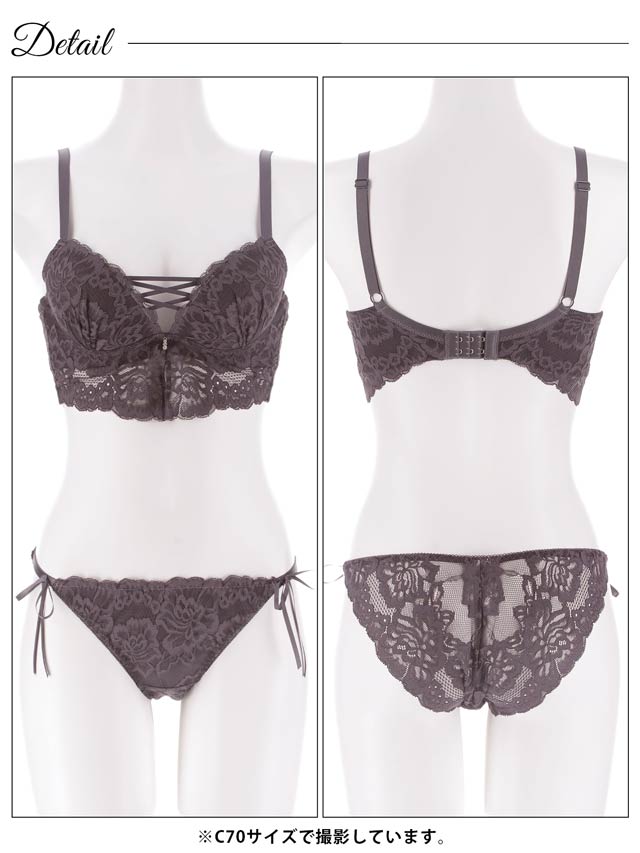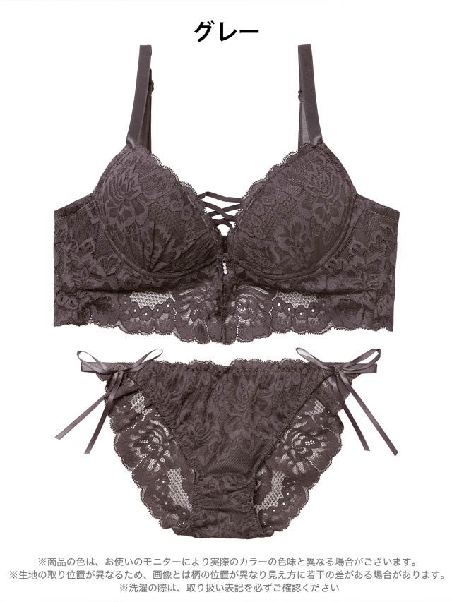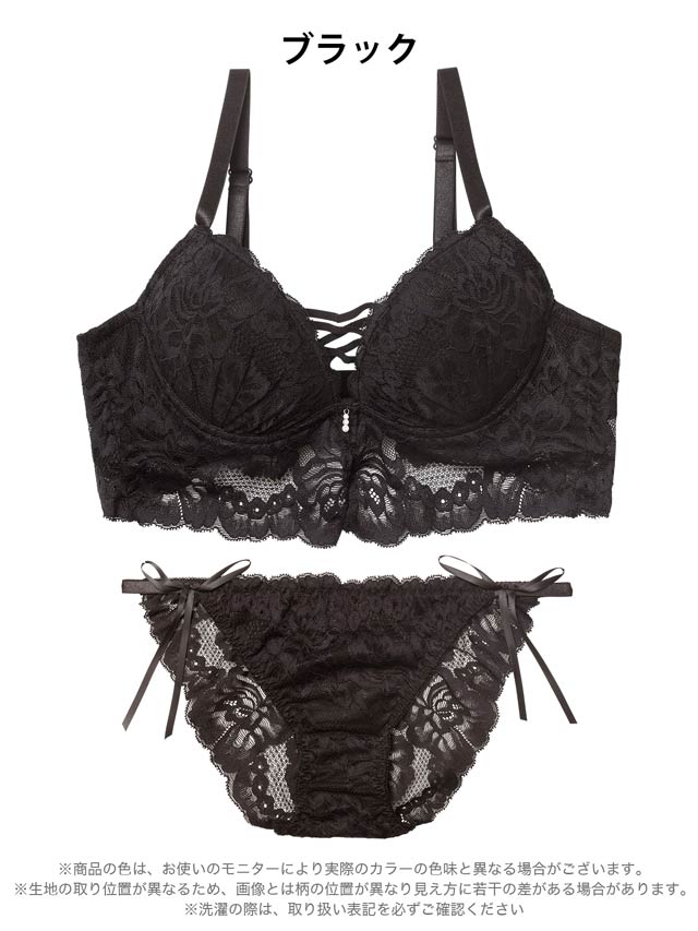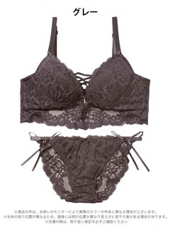 オールレースカットストリング育乳脇高ブラジャー&バック透けフルバックショーツ