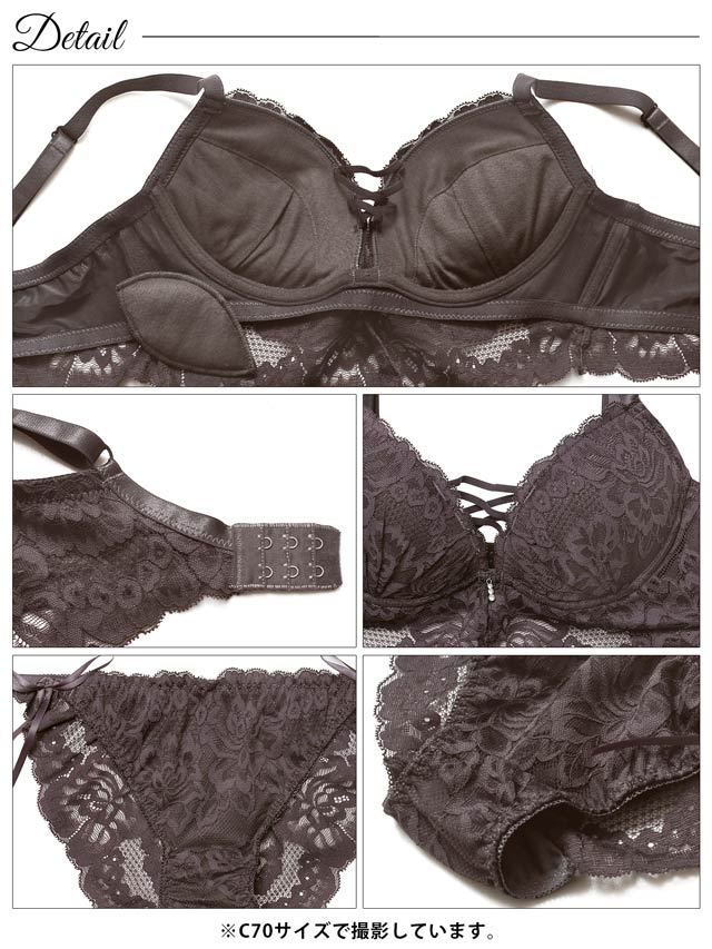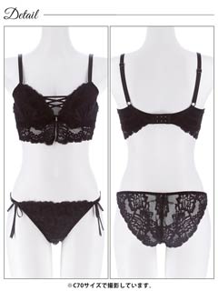 2/9新作!ノーブルレースアップビスチェ育乳脇高ブラジャー&サイド紐バック透けフルバックショーツ[大人気]