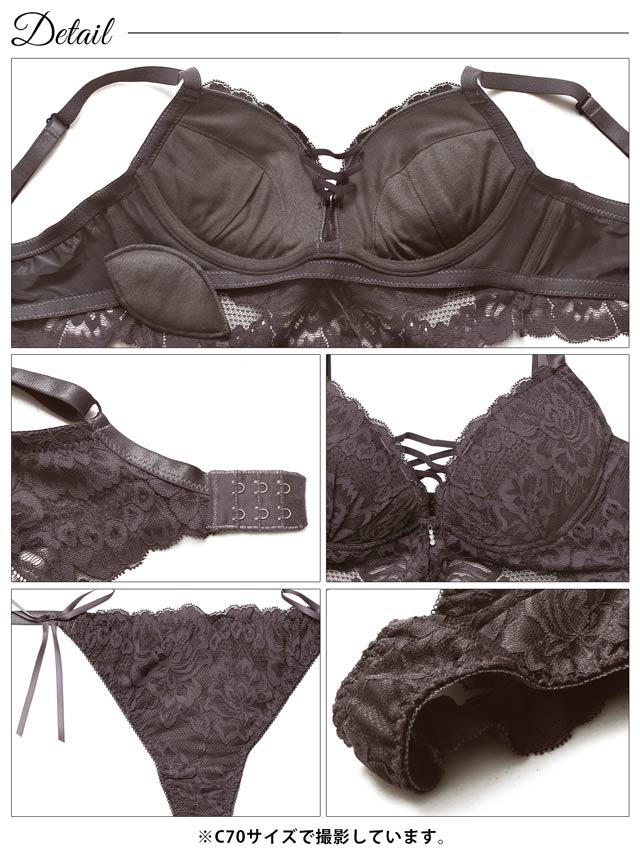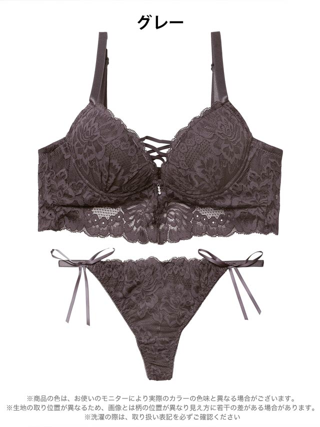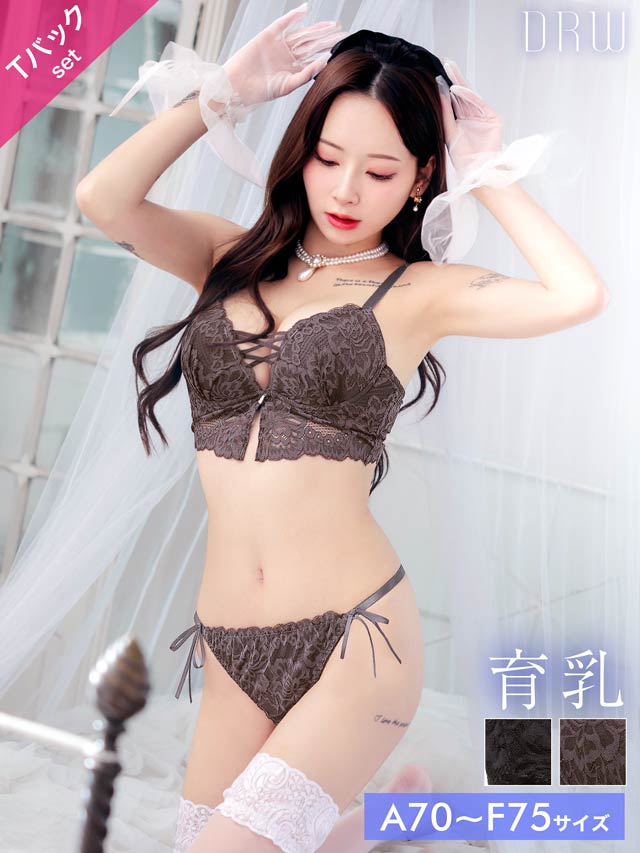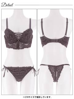 オールレースカットストリング育乳脇高ブラジャー&バック透けフルバックショーツ