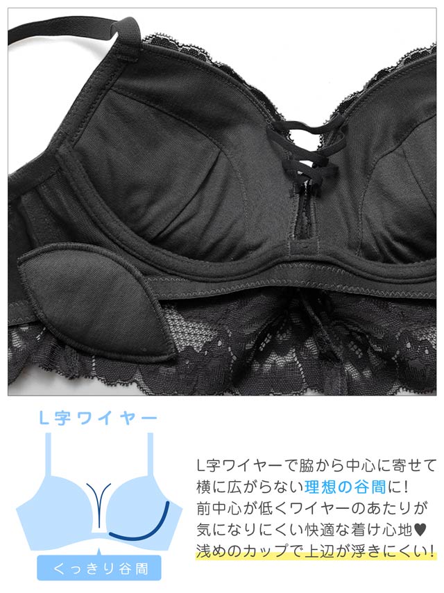 フローラルミューズ育乳脇高ブラジャー&バック透けフルバックショーツ