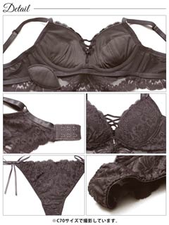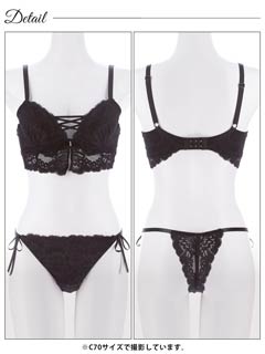 1/17再販!オールレースカットストリング育乳脇高ブラジャー&バック透けフルバックショーツ[激売れ]