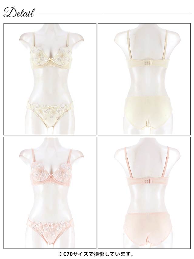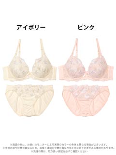 ダスティブルームエンブロイダリー育乳脇高ブラジャー&バック透けフルバックショーツ
