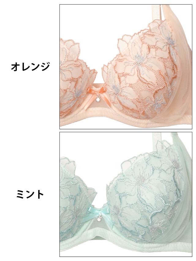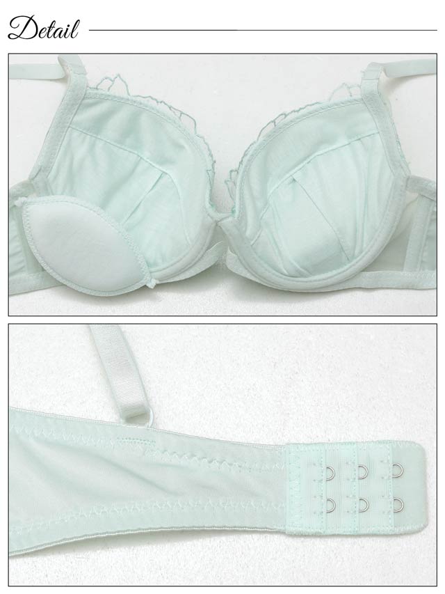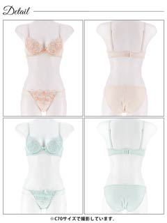 ダスティブルームエンブロイダリー育乳脇高ブラジャー&バック透けフルバックショーツ