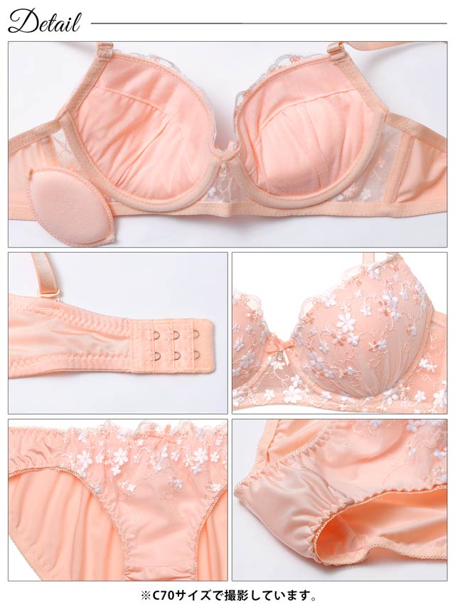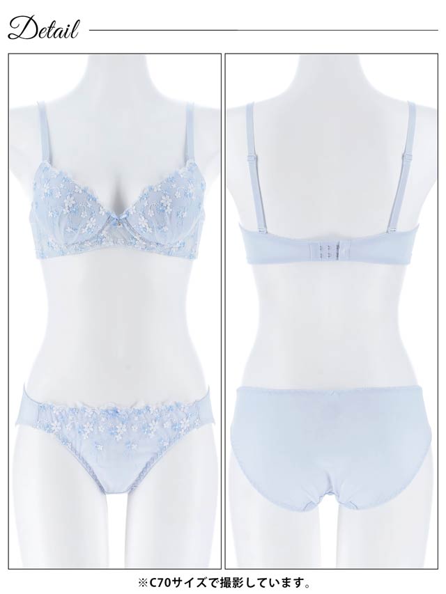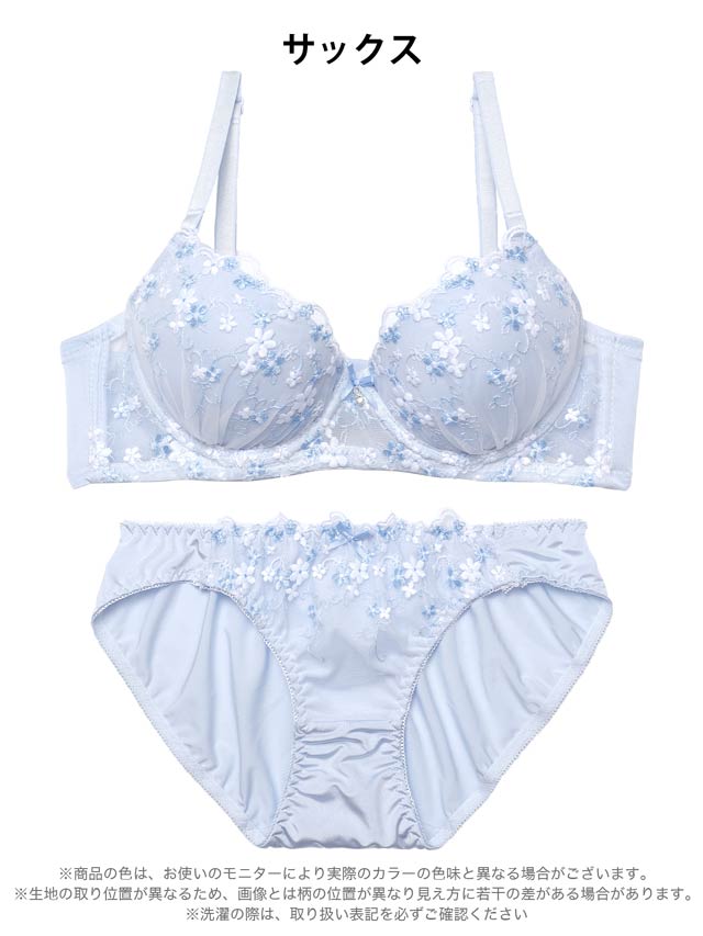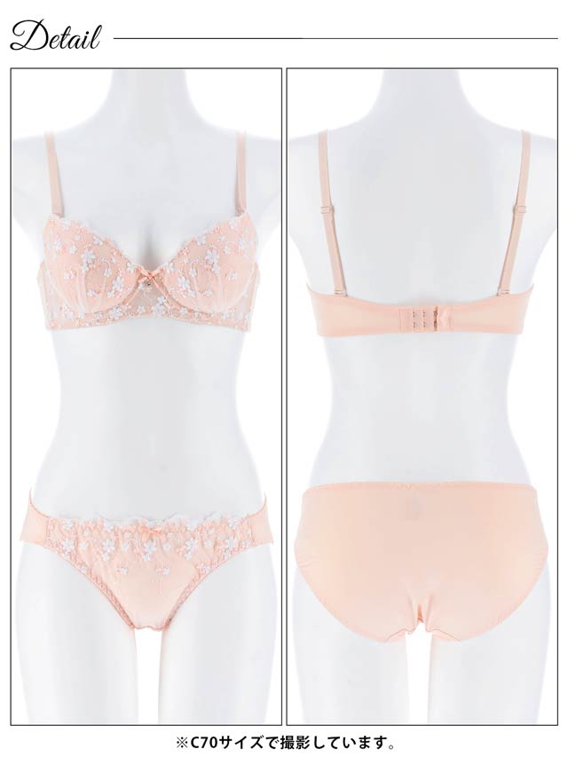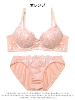 フローラルミューズ育乳脇高ブラジャー&バック透けフルバックショーツ