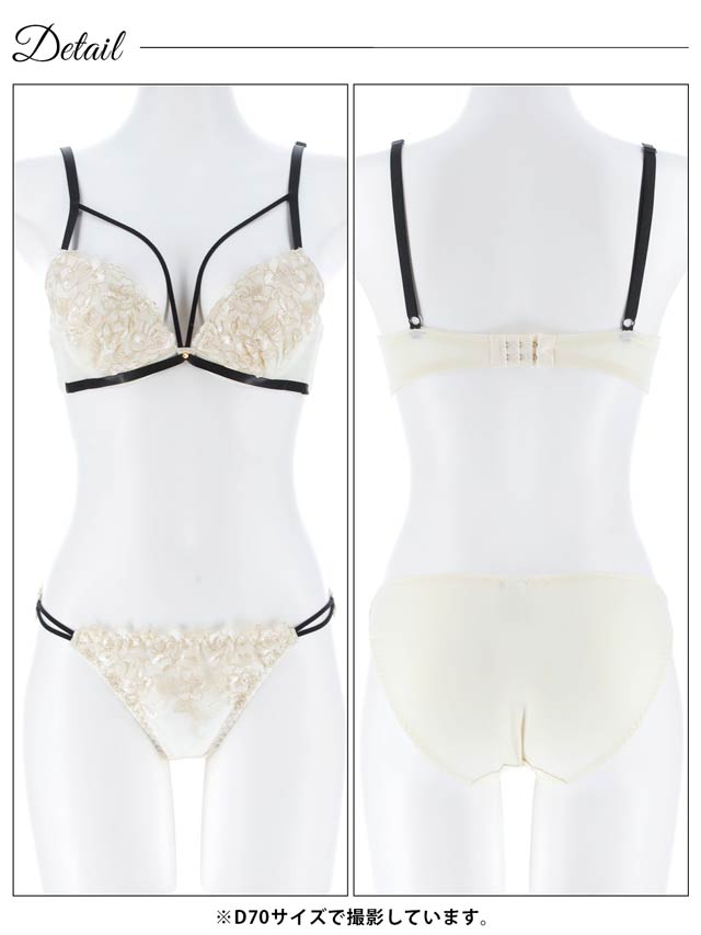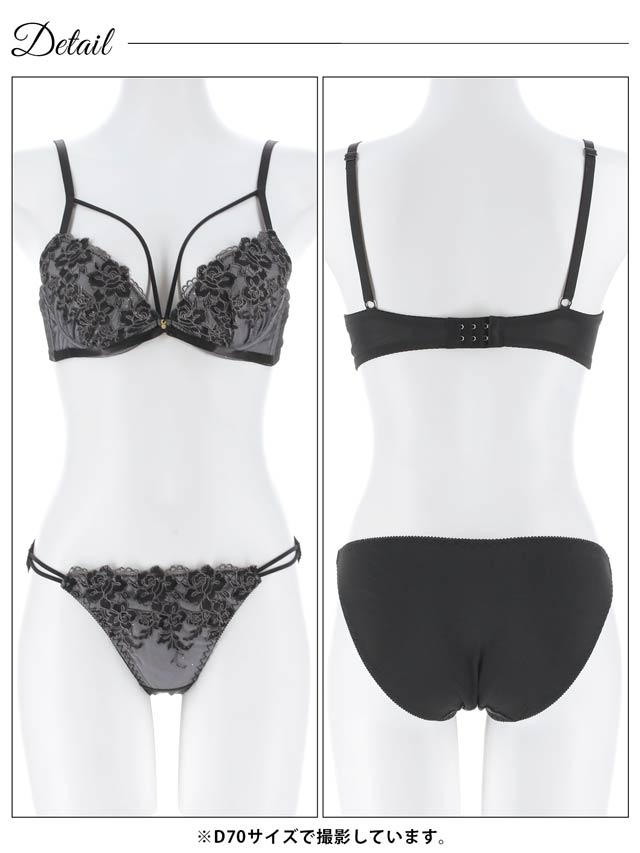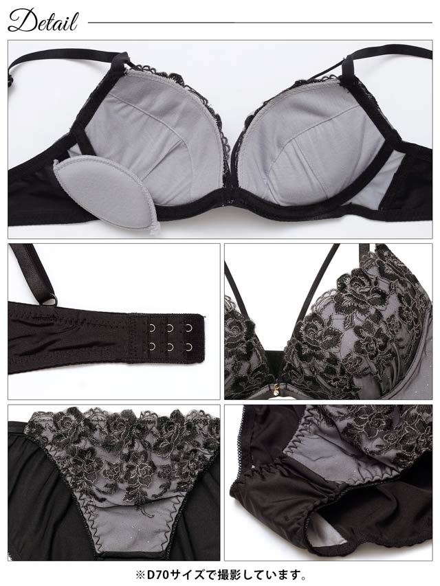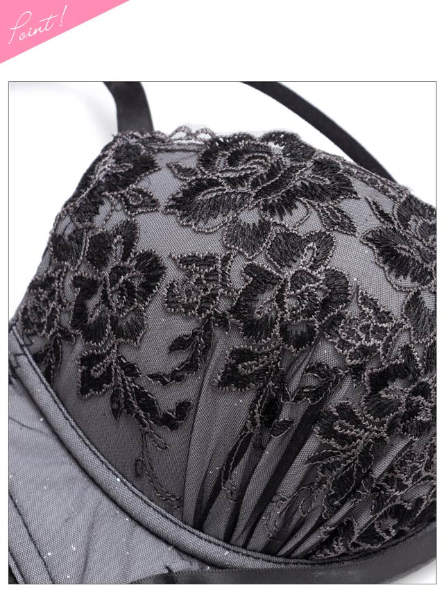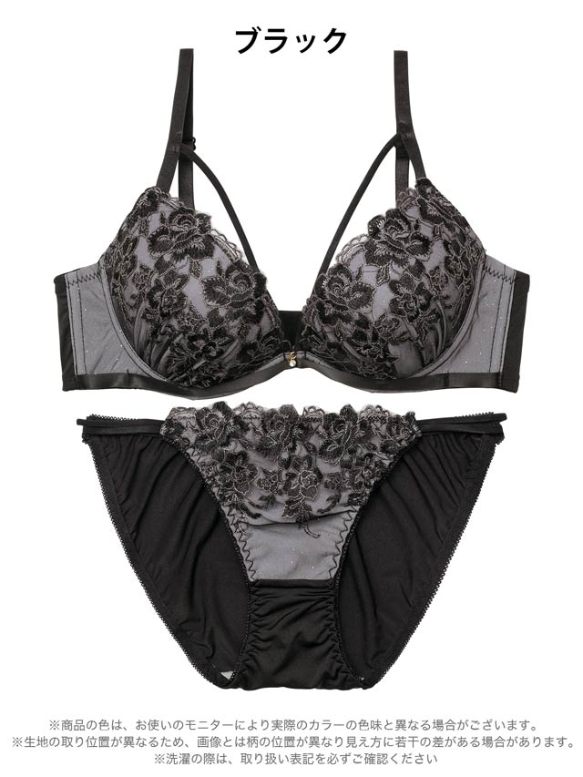 グロッシィフラワーエンブロイダリー育乳脇高ブラジャー&フルバックショーツ
