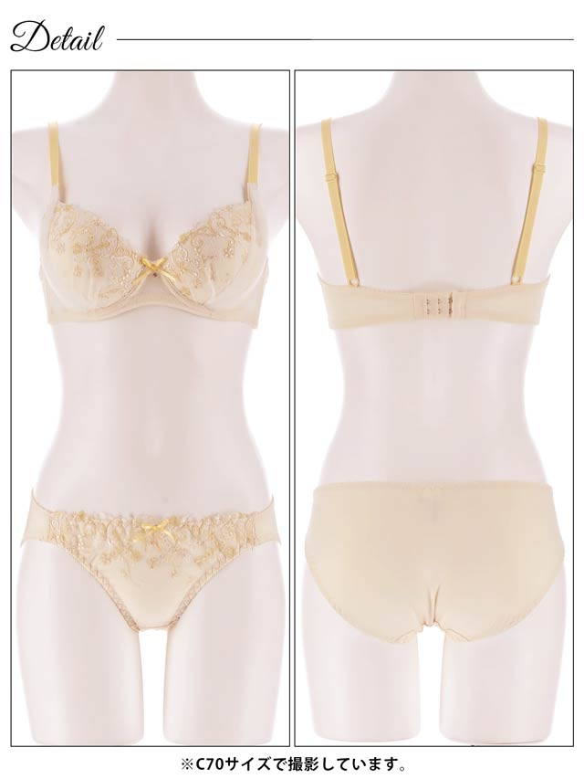 3/30新作!【EFサイズ】フェアリーフルールエンブロイダリーブラジャー&フルバックショーツ[大人気]
