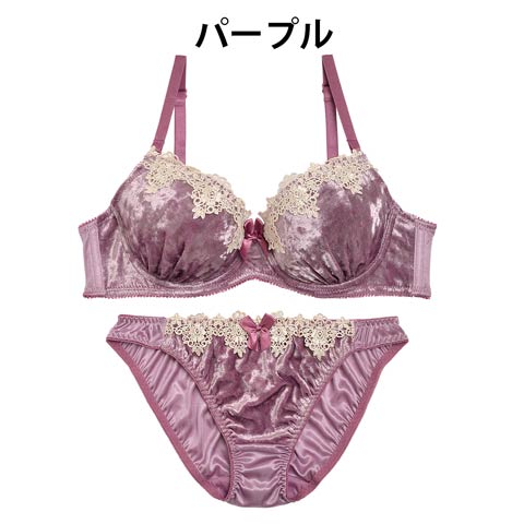 ベロアレースラインブラジャー&フルバックショーツ[プチプラ]