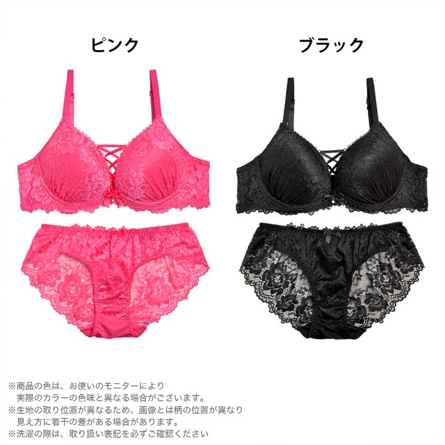 フロレゾンローズレース育乳脇高ブラジャー&サイド紐バック透けフルバックショーツ