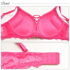 ラグジュアリーフラワーレース育乳脇高ブラジャー&バック透けフルバックショーツ[プチプラ]