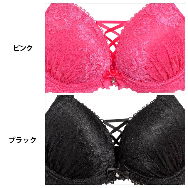 ゴージャスレースアップブラジャー&バック透けフルバックショーツ