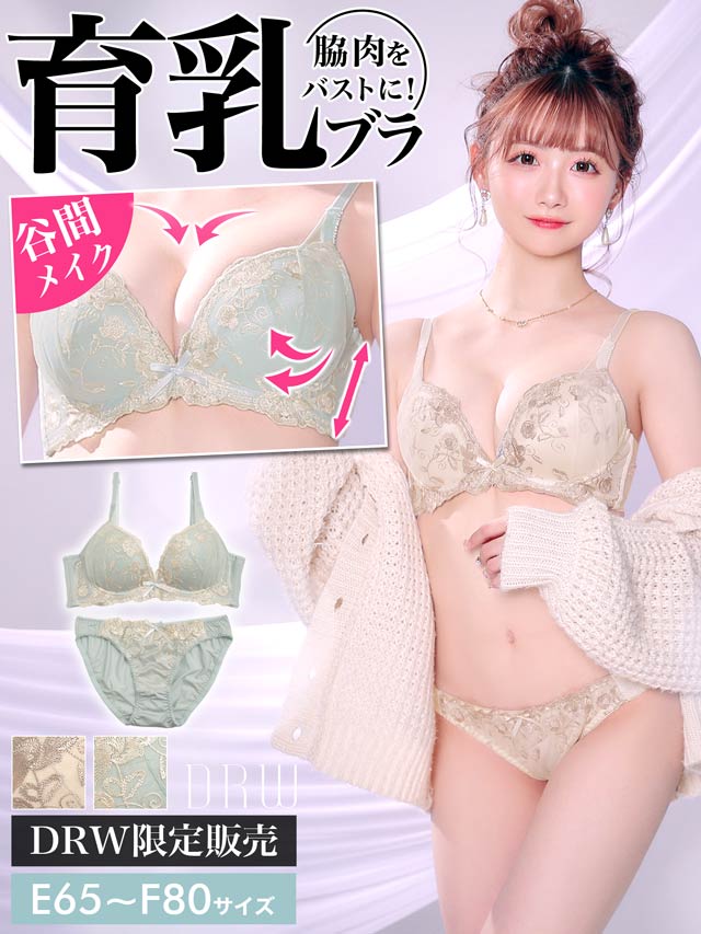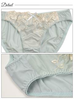 【EFサイズ】グロッシィエンブロイダリー育乳脇高ブラジャー&フルバックショーツ