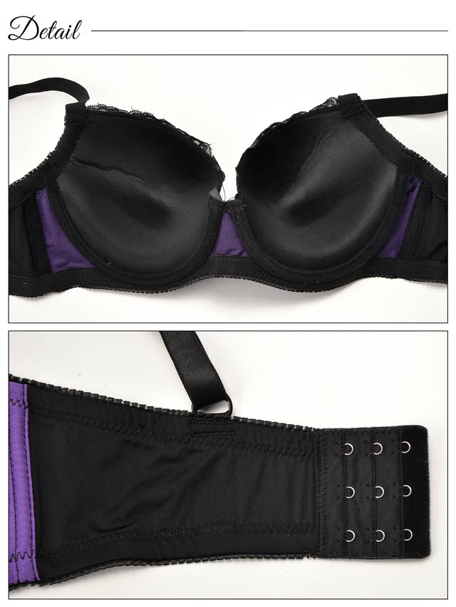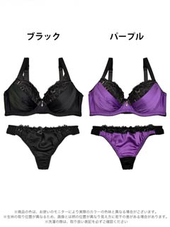 【EFサイズ】グロッシーサテンレイヤードブラジャー&Tバックショーツ