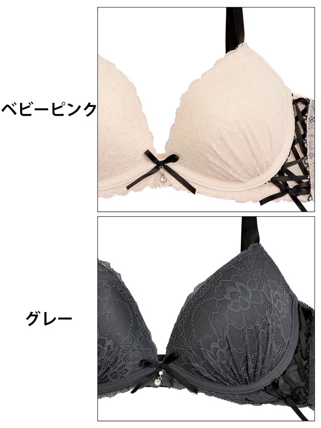 【三上悠亜着用】エレガントレースアップ育乳脇高ブラジャー&サイド紐バック透けフルバックショーツ[プチプラ]