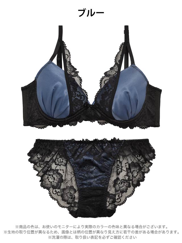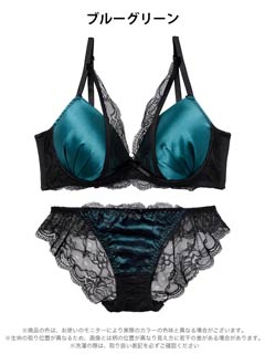 11/22再販!【EFサイズ】ジュエリーサテンレース育乳脇高ブラジャー&バック透けフルバックショーツ[大人気]