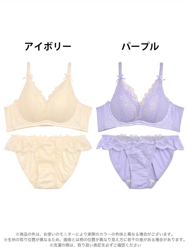 【ノンワイヤー】ブルームアイラッシュレース育乳脇高ブラジャー&バック透けフルバックショーツ[激売れ]