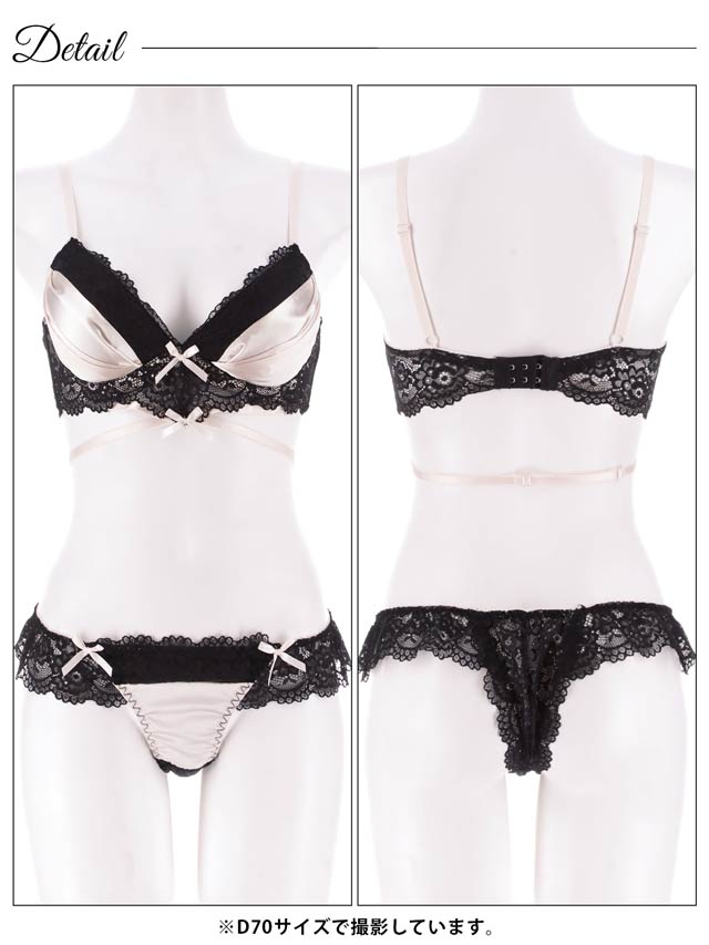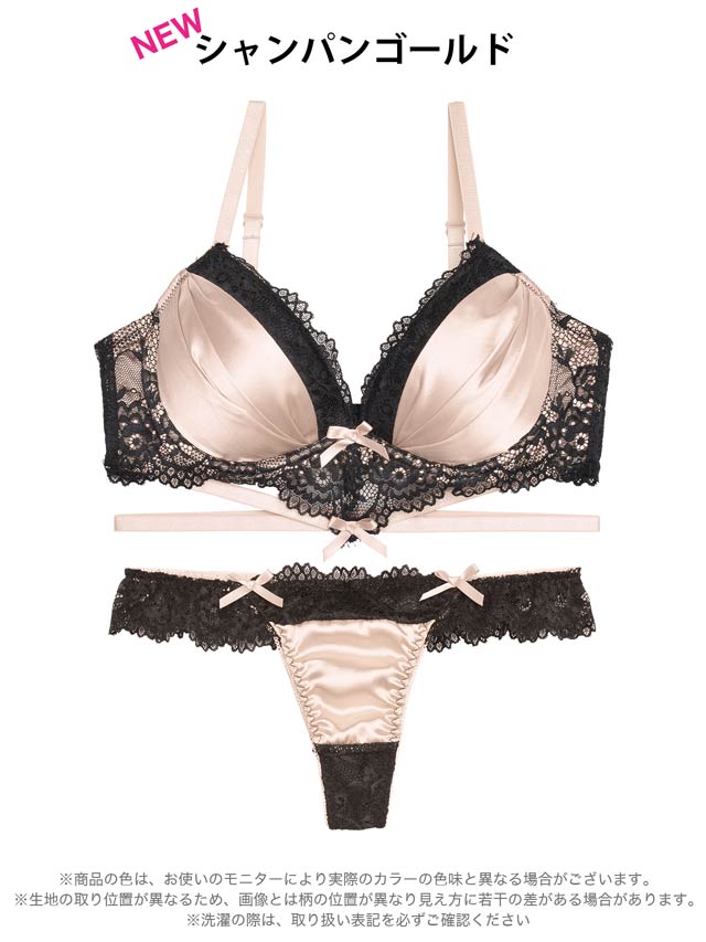 12/6再販!【三上悠亜着用】【GHサイズ】ラブリーサテンリボンコードブラジャー&バック透けフルバックショーツ[大人気]