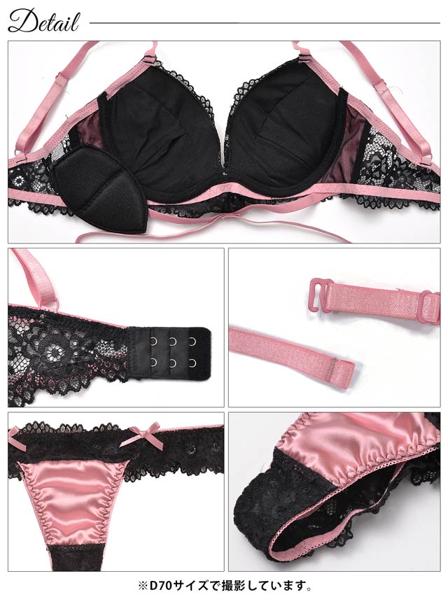 【三上悠亜着用】【EFサイズ】アンティークフラワーパフュームブラジャー&バック透けサイド紐フルバックショーツ