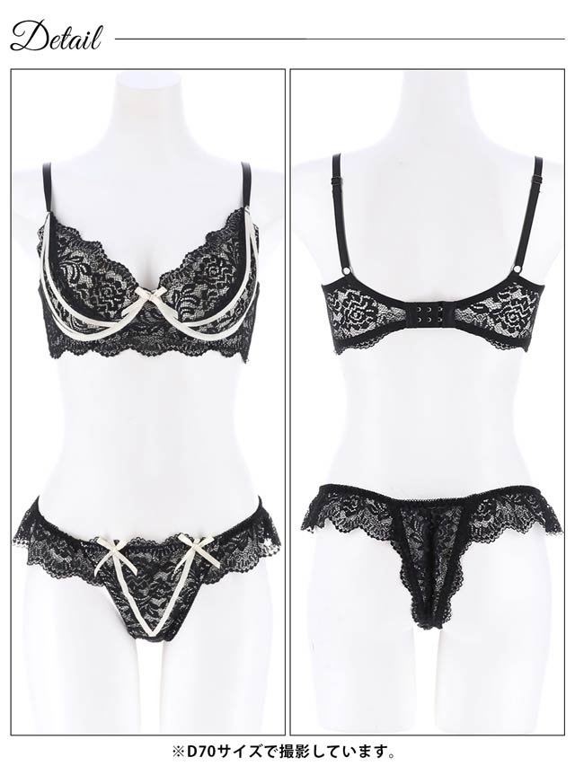 9/30再販!【三上悠亜着用】ガーリーローズレーシィリボンライン育乳脇高ブラジャー&バック透けTバックショーツ[激売れ][週替][スーパーセール]