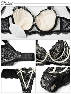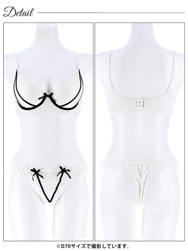オールレースカットストリング育乳脇高ブラジャー&バック透けフルバックショーツ