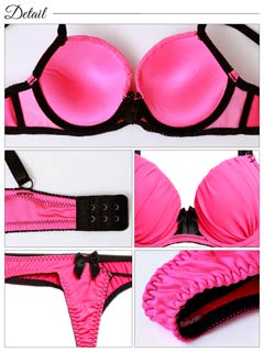【EFサイズ】ギャザーシャインネオンブラジャー&Tバックショーツ[大人気]