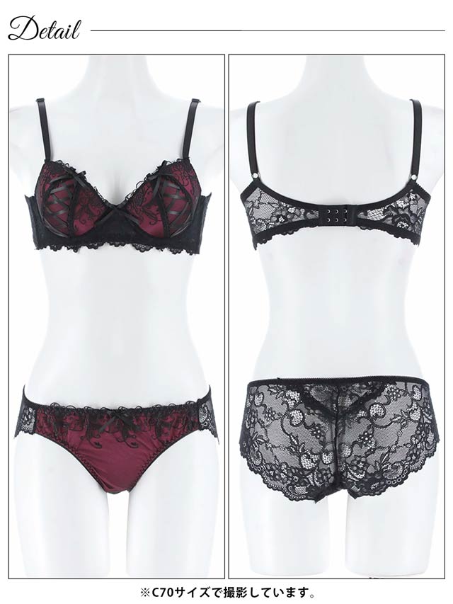 オールレースカットストリング育乳脇高ブラジャー&バック透けフルバックショーツ
