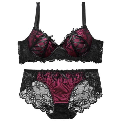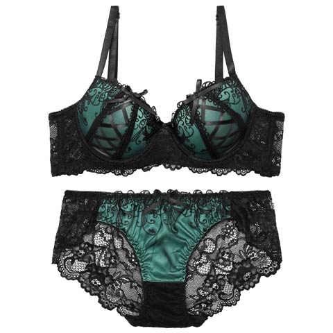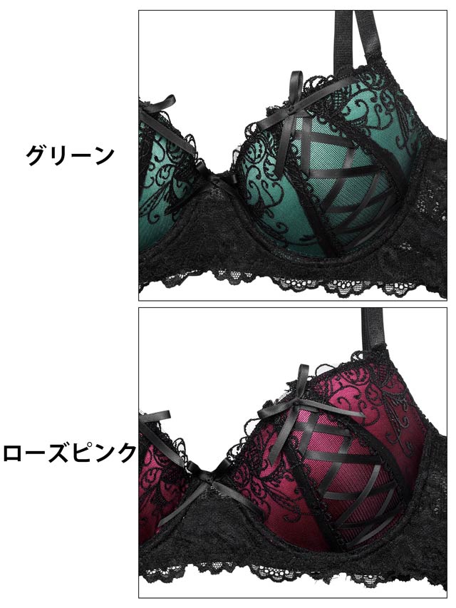 オールレースカットストリング育乳脇高ブラジャー&バック透けフルバックショーツ