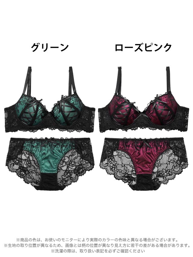 フロレゾンローズレース育乳脇高ブラジャー&サイド紐バック透けフルバックショーツ
