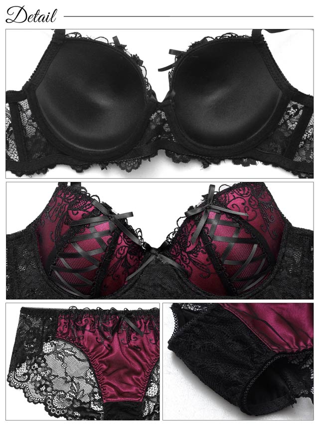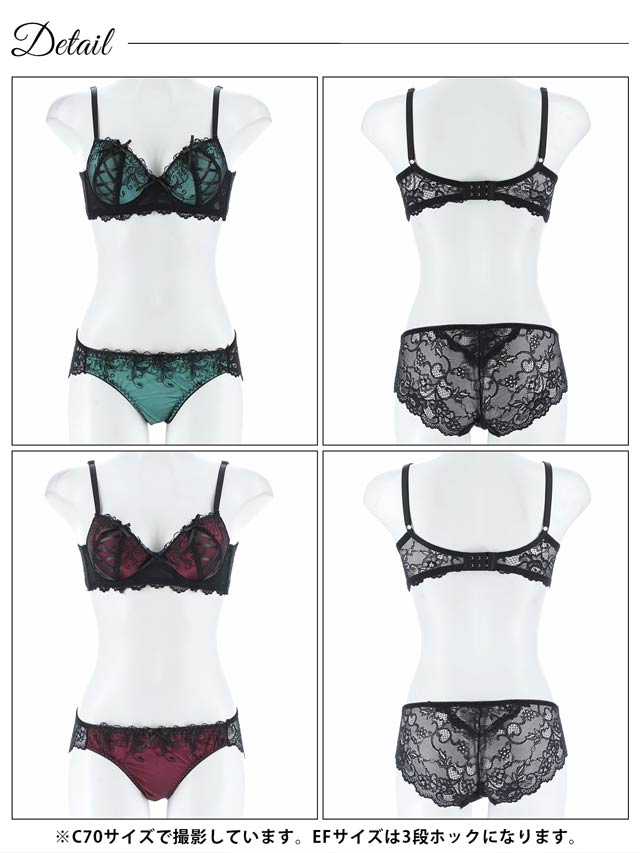 【EFサイズ】ゴシックスピンドルリボン育乳脇高ブラジャー&バック透けフルバックショーツ[大人気]