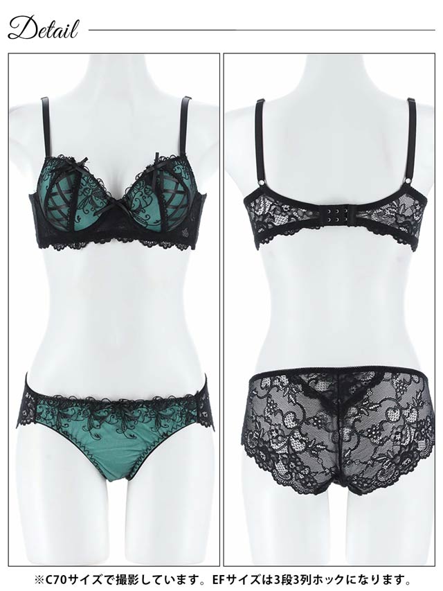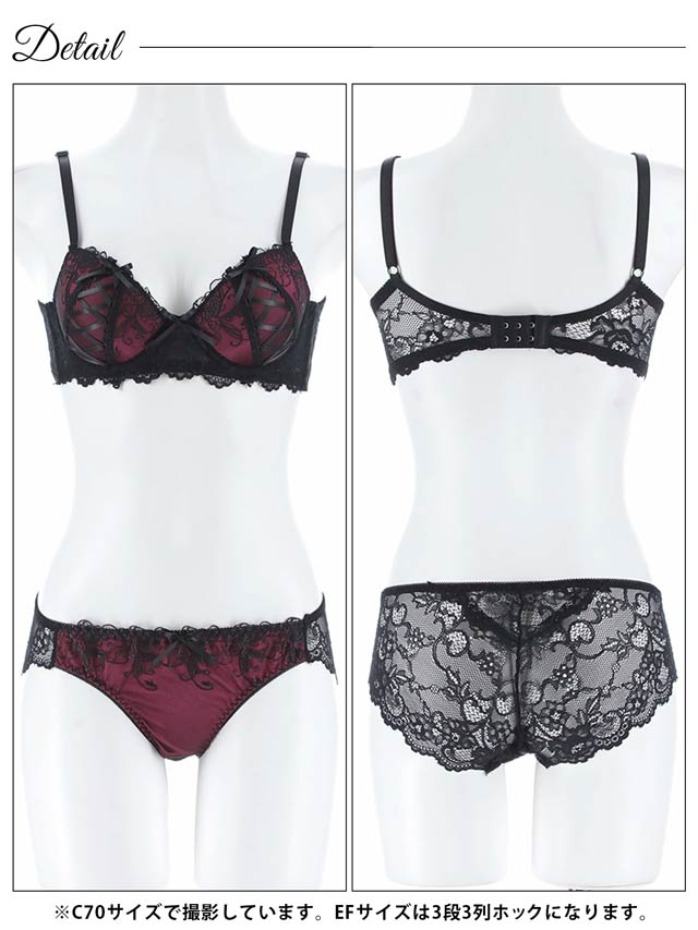 1/17再販!【EFサイズ】ゴシックスピンドルリボン育乳脇高ブラジャー&バック透けフルバックショーツ[大人気]