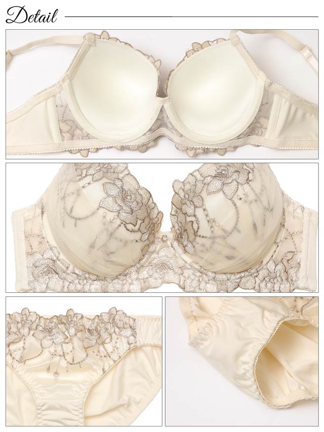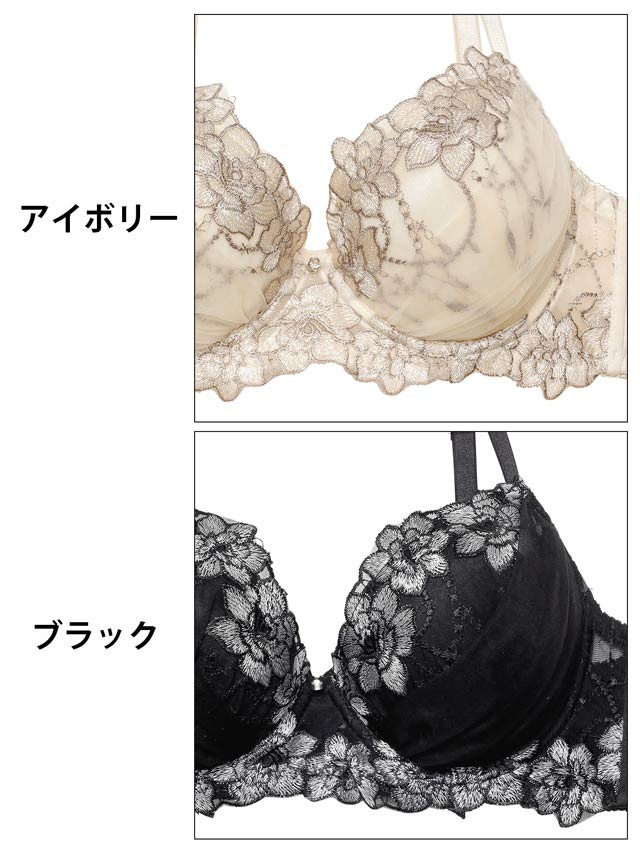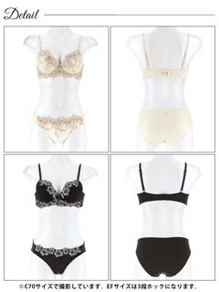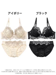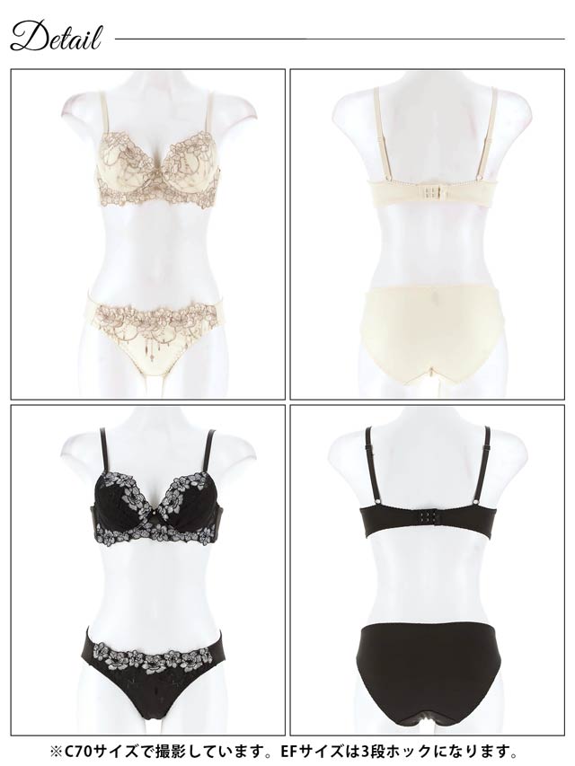 【三上悠亜着用】【EFサイズ】エレガンスフラワーエンブロイダリーブラジャー&サイド紐フルバックショーツ