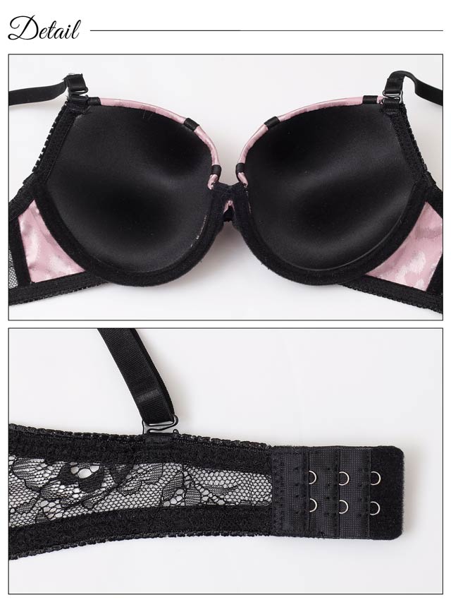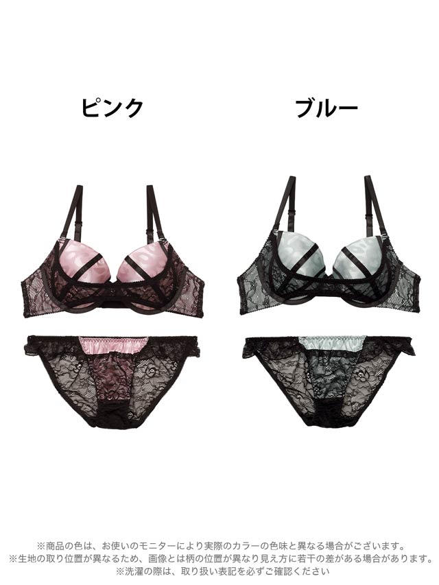 フロレゾンローズレース育乳脇高ブラジャー&サイド紐バック透けフルバックショーツ