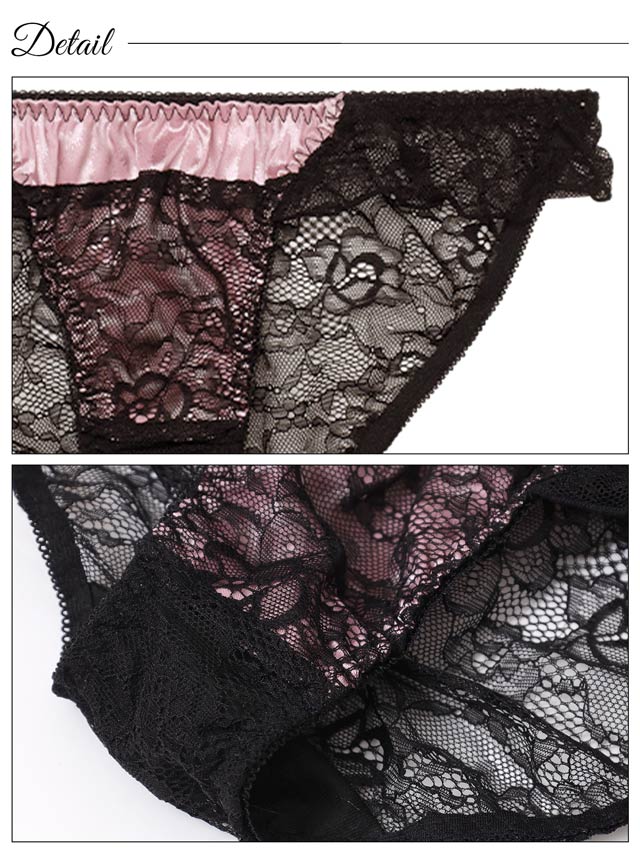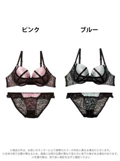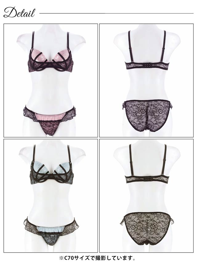 オールレースカットストリング育乳脇高ブラジャー&バック透けフルバックショーツ