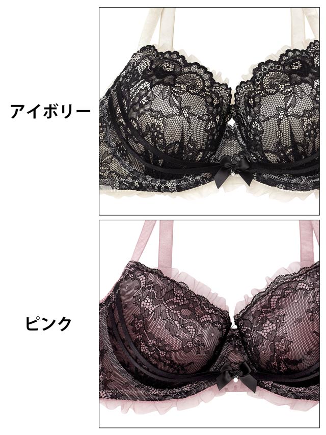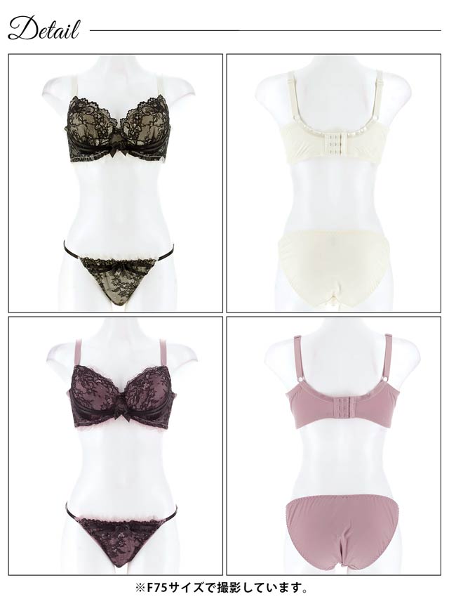 オールレースカットストリング育乳脇高ブラジャー&バック透けフルバックショーツ