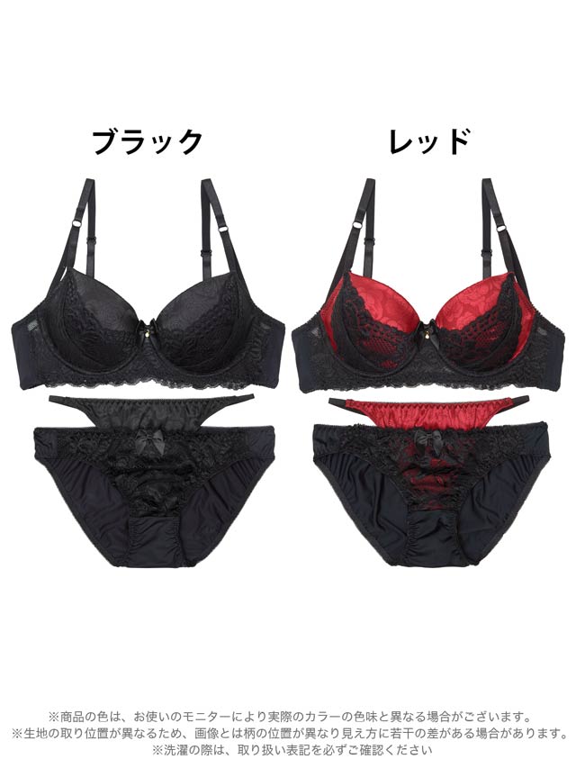 フロレゾンローズレース育乳脇高ブラジャー&サイド紐バック透けフルバックショーツ