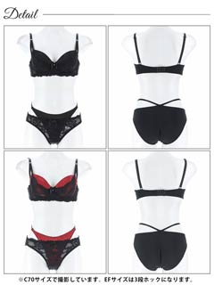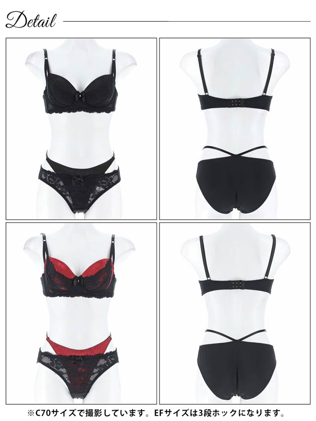 12/10再販!【EFサイズ】オールフラワーレースアップブラジャー&バック透けTバックショーツ[大人気]