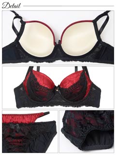 【3点セット】クラシカルレーシィサテンブラジャー&フルバック&Tバックショーツ[大人気][Xmasセール]