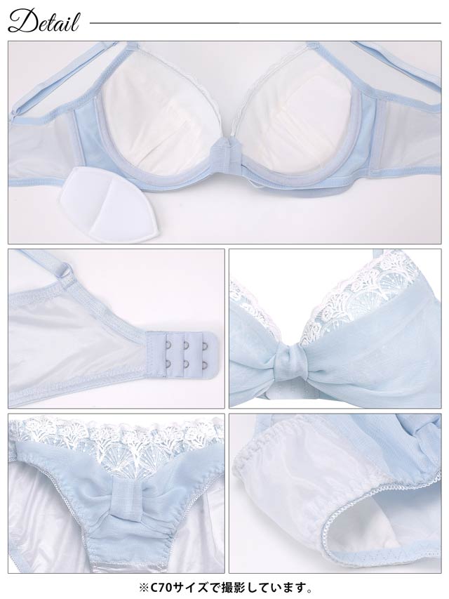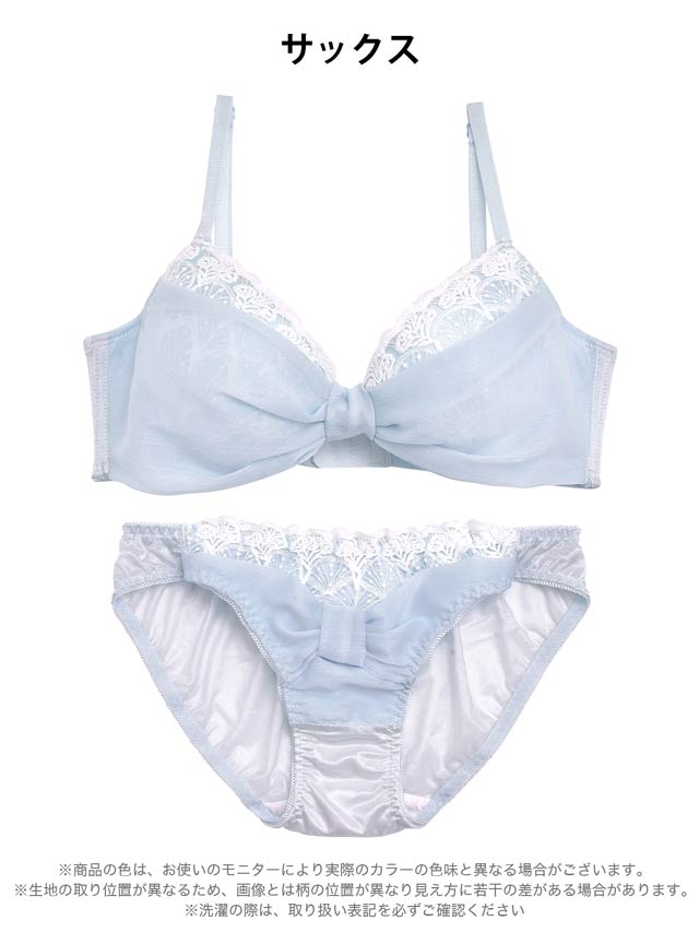 ディープサテンリボンコード育乳脇高ブラジャー&バック透けフルバックショーツ[激売れ][週替]