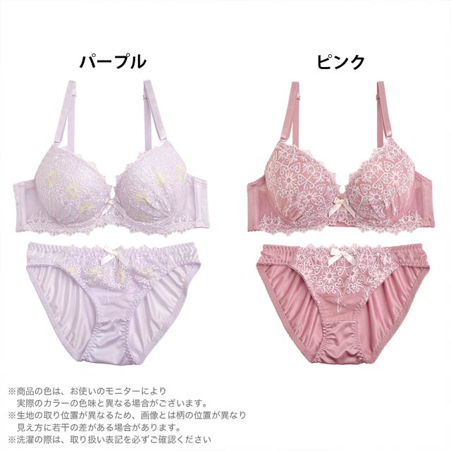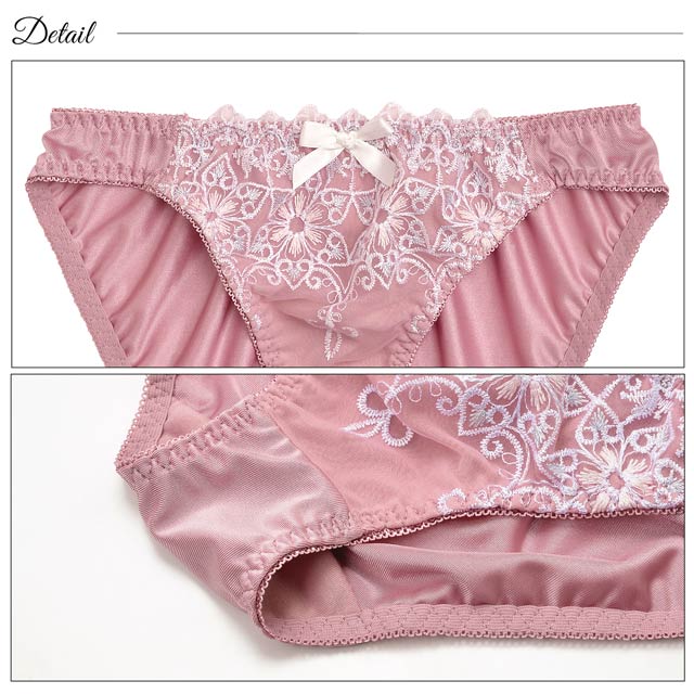 シャイニーエンブロダイリーブラジャー&フルバックショーツ[プチプラ]