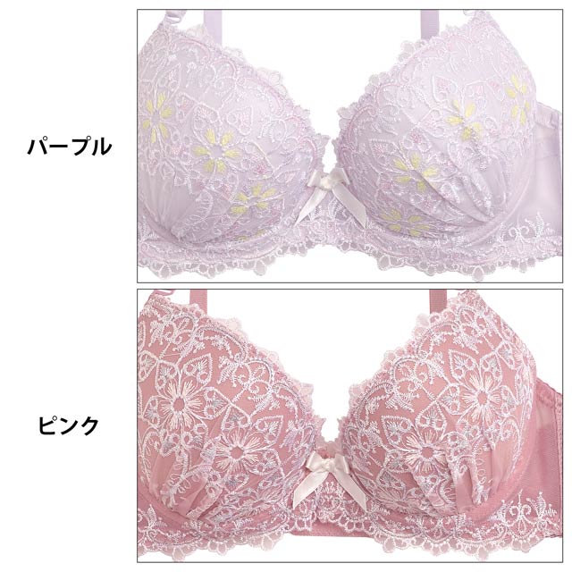 ゴージャスフラワーパール育乳脇高ブラジャー&フルバックショーツ