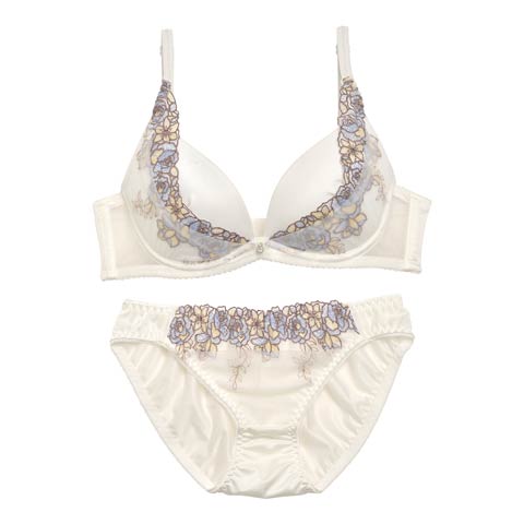 ゴージャスフラワーパール育乳脇高ブラジャー&フルバックショーツ