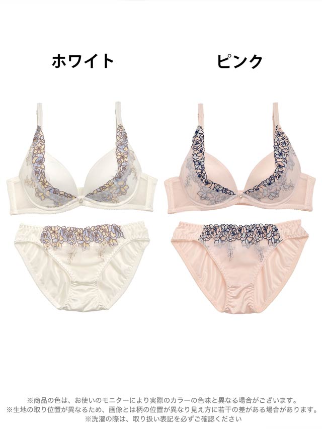 カラフルフラワーエンブロイダリーブラジャー&フルバックショーツ[プチプラ]