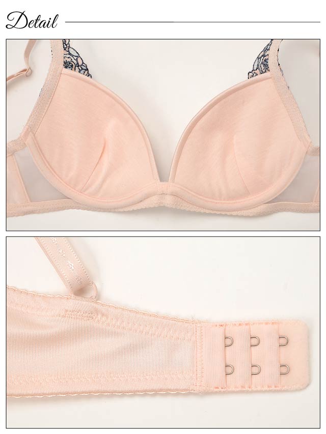 ラグジュアリーフラワーレース育乳脇高ブラジャー&バック透けフルバックショーツ[プチプラ]