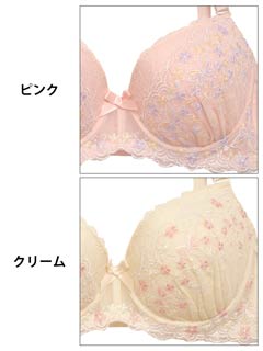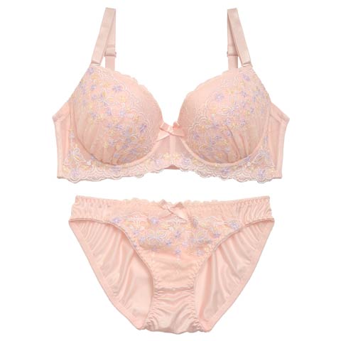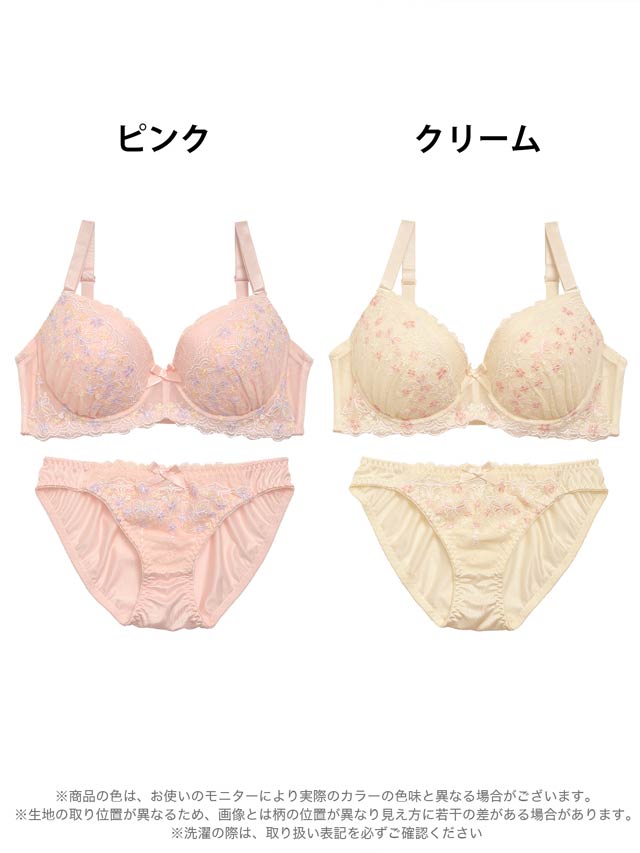 エンブロイダリー花柄レースブラジャー&フルバックショーツ