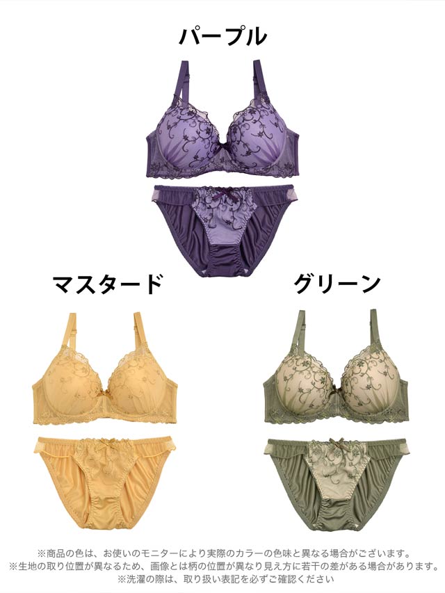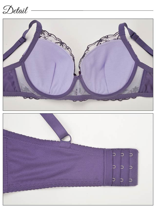 チュールエンブロイダリーブラジャー&フルバックショーツ[プチプラ]