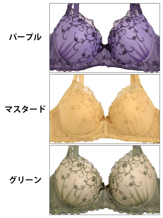 【EFサイズ】チュールエンブロイダリーブラジャー&フルバックショーツ