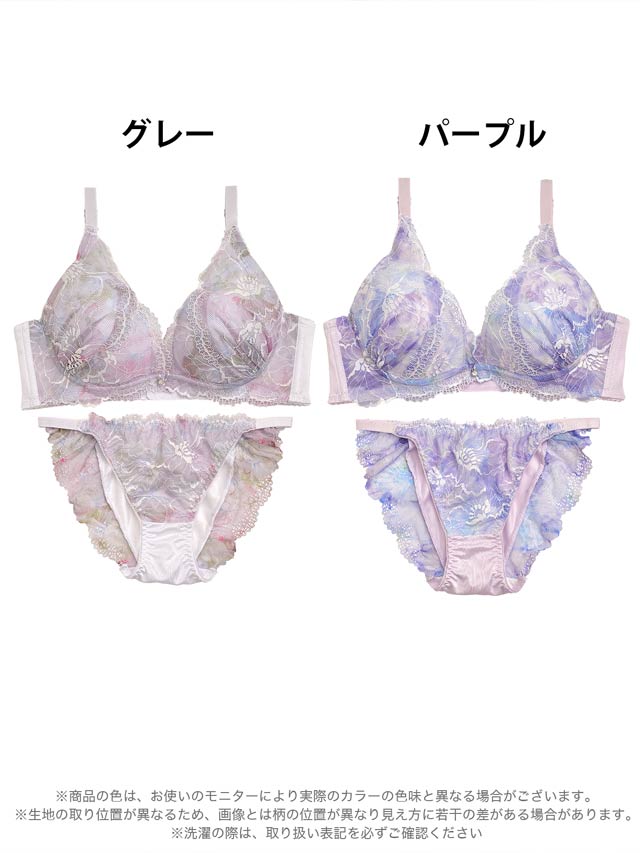 【ノンワイヤー】リリカルレーシィフラワー育乳脇高ブラジャー&フルバックショーツ
