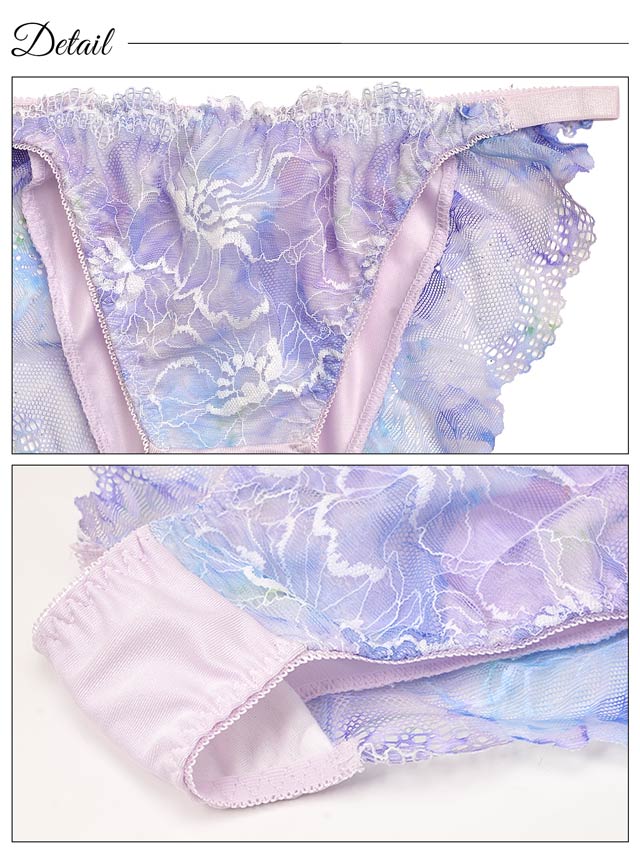 オールレースカットストリング育乳脇高ブラジャー&バック透けフルバックショーツ