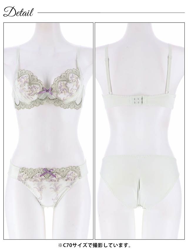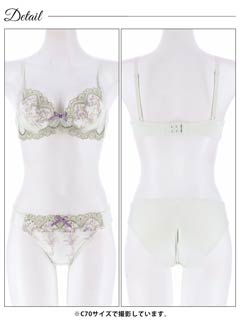 フロレゾンローズレース育乳脇高ブラジャー&サイド紐バック透けフルバックショーツ