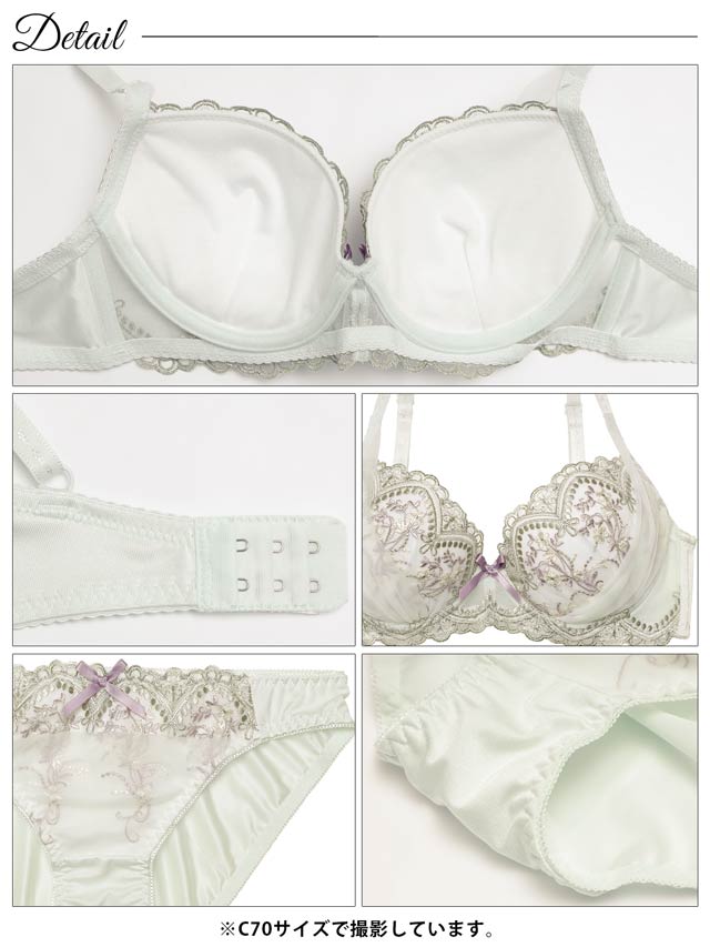 12/20再販!ジュエリーサテンレース育乳脇高ブラジャー&バック透けフルバックショーツ[激売れ]