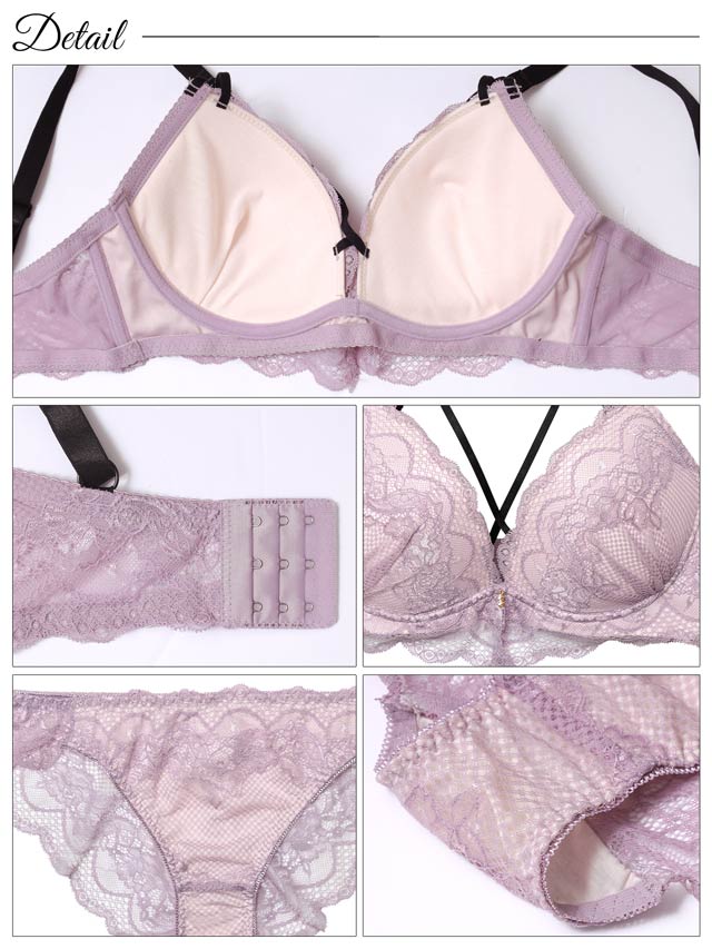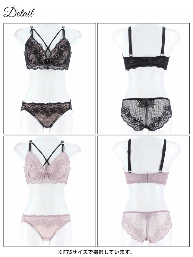 オールレースカットストリング育乳脇高ブラジャー&バック透けフルバックショーツ